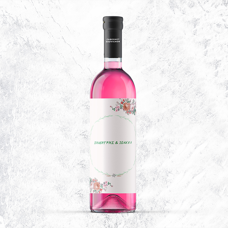 Μία αυτοκόλλητη ετικέτα που θα διακοσμήσει τα μπουκάλια των κρασιών σας προσαρμοσμένη στο θέμα γάμου.
