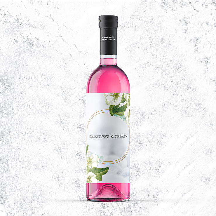 Μία αυτοκόλλητη ετικέτα που θα διακοσμήσει τα μπουκάλια των κρασιών την ημέρα του γάμου.