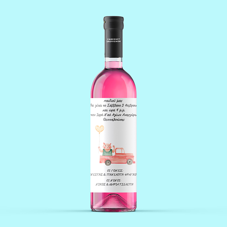 Μία αυτοκόλλητη ετικέτα που θα διακοσμήσει τα μπουκάλια των κρασιών σας προσαρμοσμένη στο θέμα της βάπτισής σας.