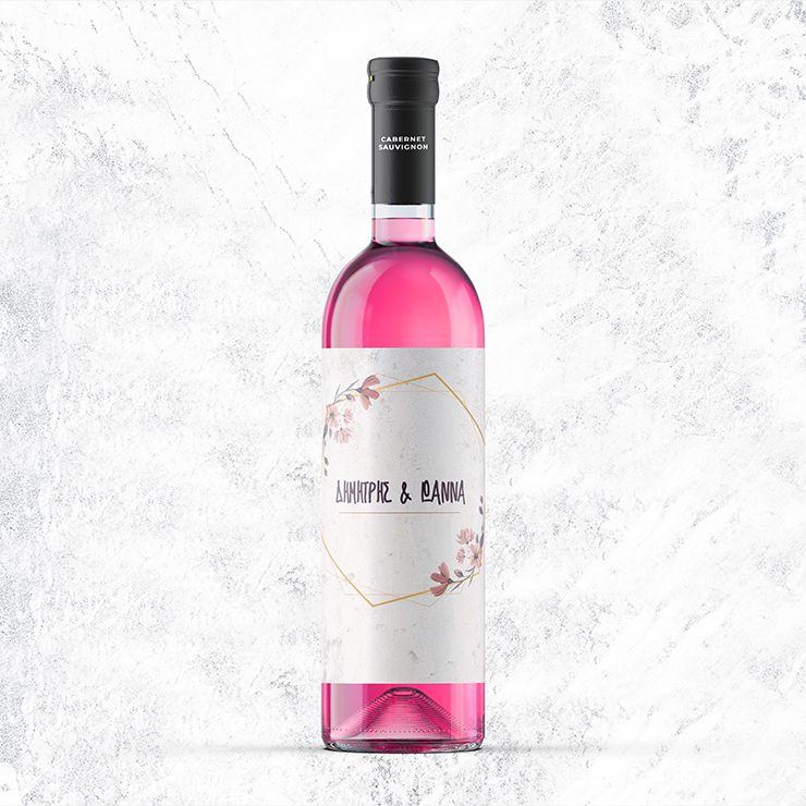 Μία αυτοκόλλητη ετικέτα που θα διακοσμήσει τα μπουκάλια των κρασιών σας προσαρμοσμένη στο θέμα γάμου σας.