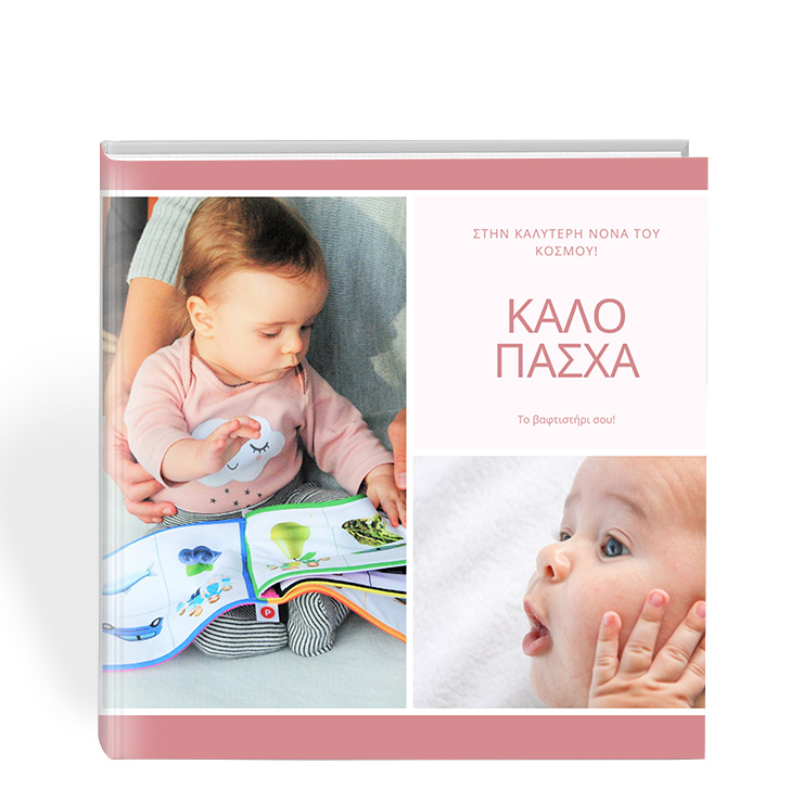Ένα εξαιρετικό πασχαλινό δώρο. Προσωποποιημένο, custom, με τις φωτογραφίες, τα κείμενα και τις λεζάντες που εσύ επιλέγεις, το photobook αυτό μπορεί να γίνει το καλύτερο δώρο από τη νονά! Φτιάξε online το photobook του βαφτιστηριού σου, γρήγορα και απλά. Διάλεξε μαλακό ή σκληρό εξώφυλλο, τον αριθμό των φωτογραφιών, τη διάταξη και όλο το σχεδιασμό. Οι επιλογές είναι αμέτρητες και το σχέδιο θα είναι μοναδικό και προσωποποιημένο, όπως εσύ το θέλεις.